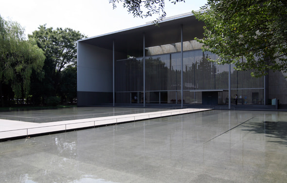 法隆寺寶物館是一座專門保存各界捐贈給法隆寺的300余件珍寶的建築(原寶物館)。在昭和39年(1964)時開館,當時出于保護文物為目的,一個星期只開放一天。隨著民衆希望增加開放次數的呼聲越來越高,于是以保存和公開為宗旨進行了改建,並在平成12年(1999)對外開放。谷口吉生擔任了現在的寶物館的設計工作,體現了洗練的現代建築風格。在2001年,新寶物館獲得了日本建築學會獎和日本建築學會作品選獎。入口大廳的開放而且充滿陽光,內部的空間為了文物保護的目的用石牆圍起來遮斷了外面的光線與入口明亮的空間,形成了對比鮮明的不同氛圍。