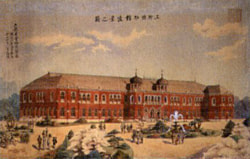 康德尔(Josiah Conder,1852-1920)所绘的《博物馆远景图》(原主体建筑) [在东京国立博物馆的网页上,介绍了其相关的历史情况。]