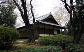 贞享•元禄年间(17世纪后期),河村瑞贤在淀川的改修工事时修建的休息室。昭和11年(1936)为松永安左工门(耳庵)所有,第二年移建到埼玉县所泽市的柳濑庄内,战后柳濑庄将其捐赠给博物馆,昭和34年(1959)移建到了庭园内。