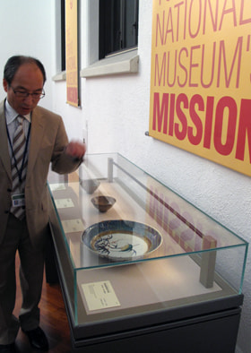 神庭: このコーナーでは文化財の輸送、修復作業について紹介しています。二つのプログラムがございまして、文化財の輸送作業と振動調査というプログラムが一つ、今ご覧頂いているのがそれです。これから仏像をトラックに乗せて奈良まで運ぼうとしているところですね。この番組の後に、絹に描かれた絵画、玄奘三蔵像の修復というプログラムがもう一つございます。いずれのプログラムも、英語バージョンと日本語バージョンがありまして、結構外国から来られたお客様も座ってご覧になっていることがありますね。このように、東京国立博物館が行っている文化財の保存に関する取り組みを、色々な面から紹介しているのがここ17室です。先ほどの実物の作品については、定期的に展示替えをしております。また右側の歴史的展示ケースにつきましては、今後またリニューアルをしたいと計画しております。数年に一度は全体を模様替えができればと思っています。(次ページに続く)