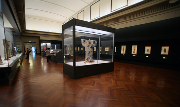 現在の本館は、ジョサイア・コンドル設計の旧本館が大正12年(1923)に関東大震災で損壊したため、昭和13年(1938)に渡辺仁設計により再建されました。コンクリート建築に瓦屋根をいただく「帝冠様式」の代表的な建築となっています。本館では、日本の美術、工芸などが展示され、歴史資料なども見ることができます。