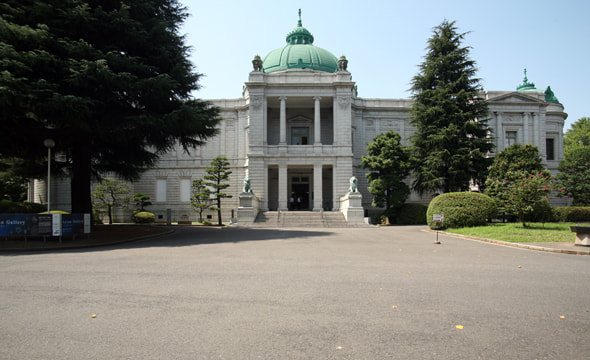 表慶館は、大正天皇(当時皇太子)の成婚を記念し奉献美術館として建設されて明治41年(1908)9月29日に竣工し、10月10日に献納されました。11月30日に、表慶館と命名されて東京帝室博物館の管理となりました。設計は、ジョサイア・コンドルの弟子で東宮御所(現赤坂迎賓館)、京都国立博物館、奈良国立博物館なども手掛けた片山東熊です。正面玄関の両側には大熊氏宏、沼田一雅制作の勇壮な獅子像が座しています。同館は、明治時代を代表する洋風建築として昭和53年(1978)に重要文化財に指定されています。