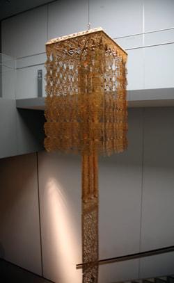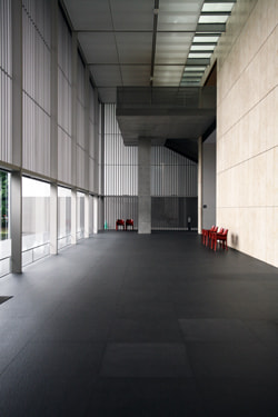 法隆寺宝物館は、法隆寺献納宝物300件余りを保管する建物(旧宝物館)として、昭和39年(1964)に開館しましたが、当時は文化財の保存を目的としていたため、公開は週一日に限られていましたが、公開日の増加を求める声が高まり、平成11年(1998)に保存と公開を目的とした建物として建て替えられ、平成12年(1999)に開館しました。谷口吉生の設計になる現在の宝物館は、大変モダンな佇まいで、2001年には、日本建築学会賞、日本建築学会作品選奨を受賞しています。エントランスホールの開放的で光溢れる明るい空間から、文化財保存のために石壁に囲まれ外光を遮断した空間は、対照的なふたつの空間を構成しています。