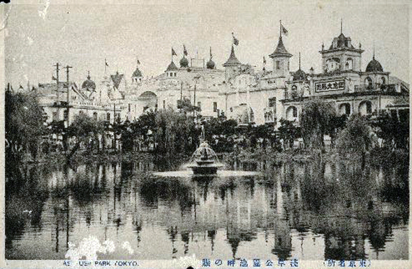 A view of Asakusa Park at the time on a picture postcard (Courtesy of Taito City Shitamachi Museum)