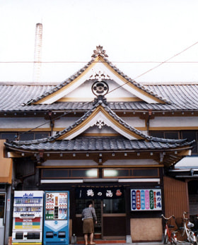 江戶錢湯的起源,是從江戶時代後期的「湯屋」所演變而來。嘉永6年(1853年)出版,由喜田川守貞所創作的「守貞漫稿」裡,描繪著江戶時代的各種風俗民情,上面記載著,當時江戶地區(東京)多數的錢湯基本上都是男女分開,而上方地區(關西)則是混浴較多。至於入浴的習慣,則是源於6世紀,因為聖德太子宣揚佛教的關係,才從國外傳入「沐浴」淨身的觀念。因此,「浴堂」演變成日本佛教寺院七堂伽藍(僧侶集中修行,清靜的場所)的其中之一。而建議在日本全國各地建立國分寺的光明皇后(710年〜760年),因為致力於推廣佛教,所以推行「施浴」這樣的慈善事業,也形成了在寺院裡沐浴的習慣。由於以上的原因,今天這些充滿懷舊氣息的錢湯的建築外觀形式,是模仿寺院的伽藍所建造的「宮造」建築。從正安元年(1299年) 「一遍上人繪傳」(歡喜光寺收藏)裡所描繪的澡堂風貌即可窺見一班。(接續下一段)