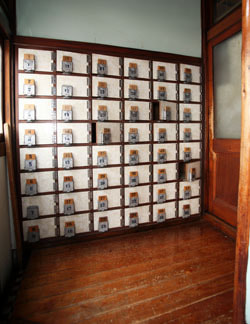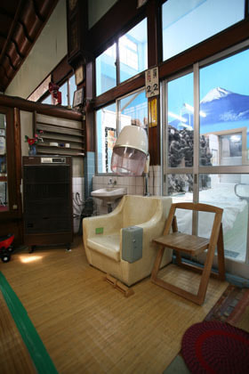 常客的盥洗用具被放在柜子上保管。为了让客人可以暂时休息,摆放了许多的椅子、沙发。