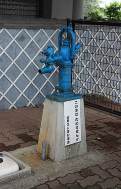 A pump used in case of disasters, which stands near Yanaka Elementary School (Taito City)