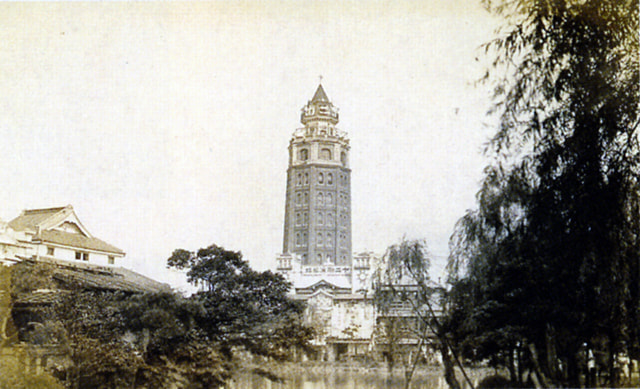 浅草凌云阁(共十二层)在明治23年(1890)年开业,由英国建筑师博尔顿(William Kinnimond Burton,1856-1899,在日本度过了其职业生涯中的大部分时光)设计。建成时的高度据说是220尺(约67米),在明治末期进行的实际测量中被证实其实际高度为173尺(约52米),是当时日本最高的建筑物,同时也是日本最早设置了电梯的建筑,被称为凌云阁。它作为浅草的标志性建筑受到大家的喜爱,后来在大正12年(1923)关东大地震中倒塌。(照片:大正时代)