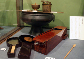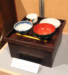 箱桌一直使用到矮腿饭桌等作为餐桌被广泛普及为止,平常里面放置着餐具,到了吃饭的时候,把盖子翻过来当桌子使用。(明治时代)