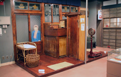 館内にある銭湯の番台は、台東区蔵前にあった銭湯「金魚湯」で実際に使用されていたものです。番台に上り、しばし銭湯の番頭さんの心持ちを味わう事が出来ます。