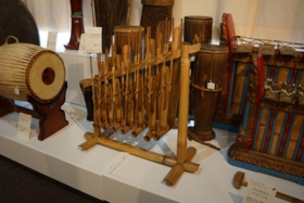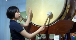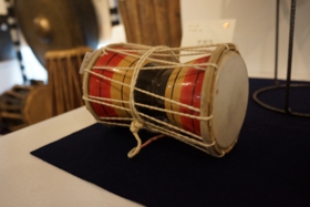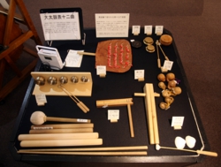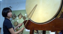 采访之际,展示室里展示着200到250件左右来自世界各地的太鼓。中央部分是日本的太鼓,进入入口后的右手边是中南美的太鼓,左手边是非洲的太鼓,正对面的里面展示陈列着中东、欧洲、亚洲圈的拥有各种各样表情的太鼓。展示品的解说上都贴着标记,红色标记表示乐器不可以触摸,贴有音符符号的标记是可以随便触摸和敲打演奏的。