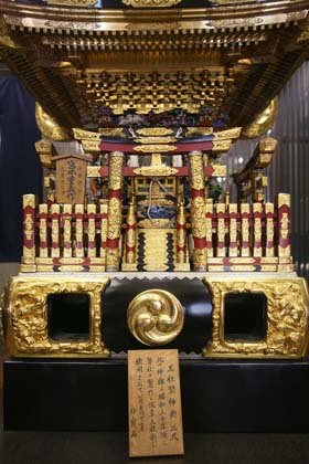 A portable shrine for Sanja Festival (2 shaku (approximately 60 cm), Head Office, Miyamoto Unosuke Shoten) It was used at Asakusa Sanja Festival held around 1955.