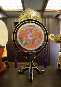 A splendid Japanese drum (Imperial Household model) displayed at the Head Office, Miyamoto Unosuke Shoten, It is used for ceremonial imperial court music.