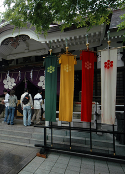 鳥越神社是為了祭奠日本武尊(日本神話中一位武功蓋世的英雄)而建造的,相傳它始建于距今1300多年以前的白雉二年(651年)。這裏本來是一片比周圍地勢略高的土丘,神社就建在土丘上面。但是隨著德川的赴任到來(1590年天正18年,德川家康作為關東八州的領主就任,進而改名為江戶地區),為確保武家家宅用地而鏟平了這個山丘,加上後來的填海造地等改造,這裏被夷為平地,變成現在呈現在我們眼前的樣子。(台東區鳥越2-4-1)