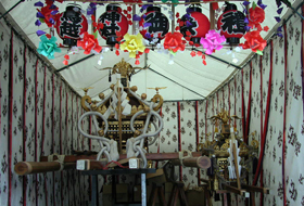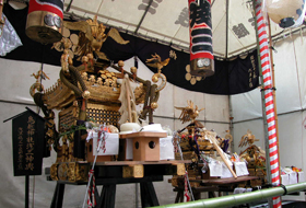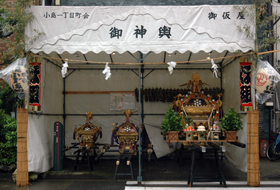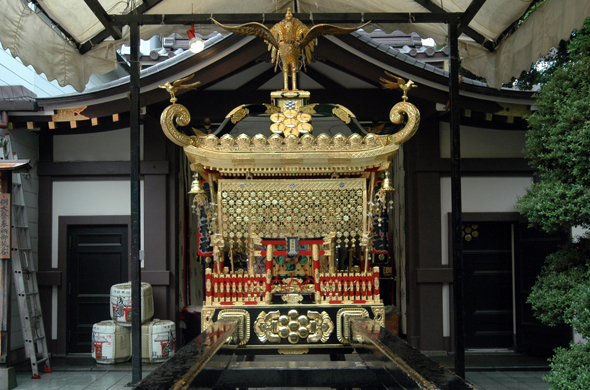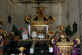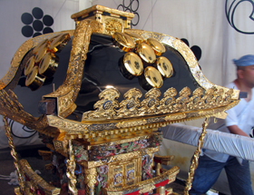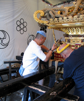 A portable shrine is assembled by hands of people in each town. A portable shrine gradually shows its gorgeousness. It is starting to show various expressions from magnificent workmanship applied on each part.