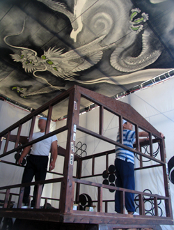 There was a bravely rising dragon on the tasseled ceiling where assemble frames.