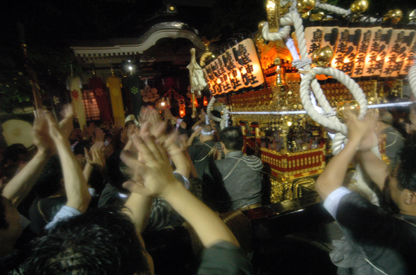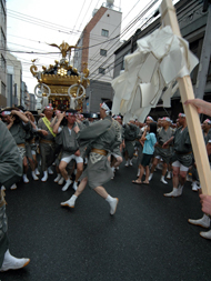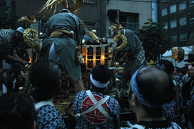As Torikoe festival called as “night festival”, a big portable shrine “Sengan Mikoshi” left Torikoe Shrine early in the morning, traveled each town, it dresses gorgeously with paper lanterns as sun goes down. And, by the time when a portable shrine goes into Torikoe Shrine (Miyairi), the festival reaches its climax.