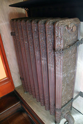 在西洋馆的大厅里,摆放着仿古的燃气取暖器。从其新艺术(Art Nouveau)风格的装饰上能够感觉到其格调。