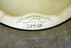 在洗手盆上除了有“LIFT UP”字样外,还刻有在当时的伦敦也是有数的几家陶器生产厂家之一的DOULTON&Co制造公司的名字。直到现在,皇家道尔顿(ROYAL DOULTON)仍然是制造格调高雅产品的品牌厂商。