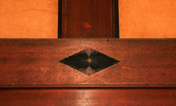 "Sangai-bishi," a crest of the Iwasaki family, is placed on various components and furniture of the Japanese-style house.