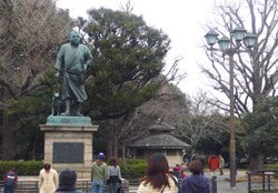 You can find the remnants of changes of the times in Ueno Park. The grave of the Shogitai, which fought against the government army when the return of political power to the Emperor, lies quietly next to the bronze statue of Takamori Saigo who was a strategy staff of the government army (the statue was created by Koun Takamura in 1898, and Saigo's pet dog "Tsun" was created by Sadayuki Goto).