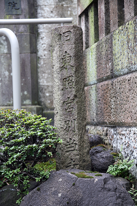 The stone monument bears the inscription "Former Toshogu shrine temple."