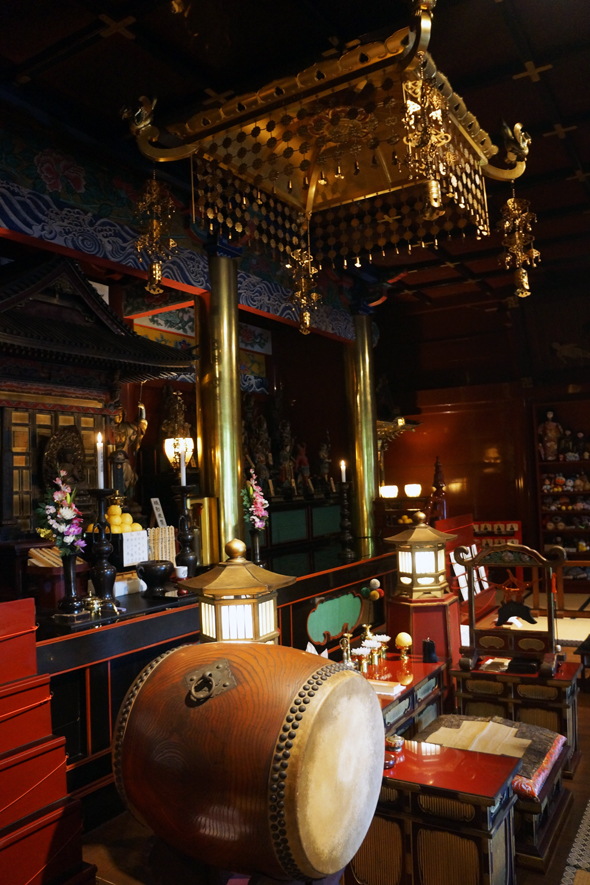 清水觀音堂雖然幸免于上野戰爭的戰火,但是由于常年受到燒香煙熏等原因,殿內已經黑沈不堪。經過于1990年(平成2)實施的拆除修複工程後,殿內的朱色、黑色和金色又重新煥發出原來對比鮮明的豔麗色彩。