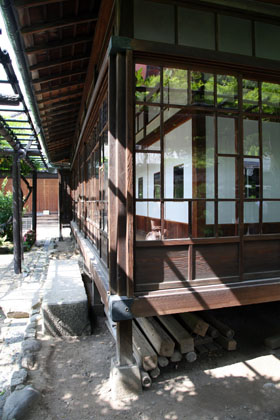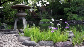 Denpo-in is the chief priest's living quarters, located in Senso-ji Temple precincts, and consists of several buildings, including a guest hall and a main entrance, which were built in 1777, a main drawing room, which was built in 1902, and a living room for the head priest, which was rebuilt in the Taisho Period. Although Denpo-in was called "Kannon-in" or "Chiraku-in" when it was built, the name was changed to Denpo-in during the Genroku Period (1688-1704). The Amitabha and two bodhisattvas are enshrined in the guest hall, and memorial tablets of successive shoguns of the Tokugawa shogunate, and memorial tablets of successive head priests of Senso-ji Temple are also enshrined on both sides of the Buddhist images. Buddhist services, including "Sange-e," an anniversary of Dengyo-daishi's death and "Tendai-e," an anniversary of Tendai-daishi's death, are held in the hall. The approximately 12,230 square meters garden with lush green is a landscape garden in a circular style, which is said to have been designed by Enshu Kobori in the Kanei Period (1624-42). Denpo-in's garden had been a garden for imperial prince abbots and kept secret from the public for a long time. Although the garden is still not open to the public, some special events, including a garden tour and a tea ceremony, are sometimes held in the garden.