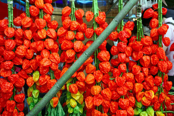 Ripened Ground Cherries Displayed in "Hozuki-ichi"