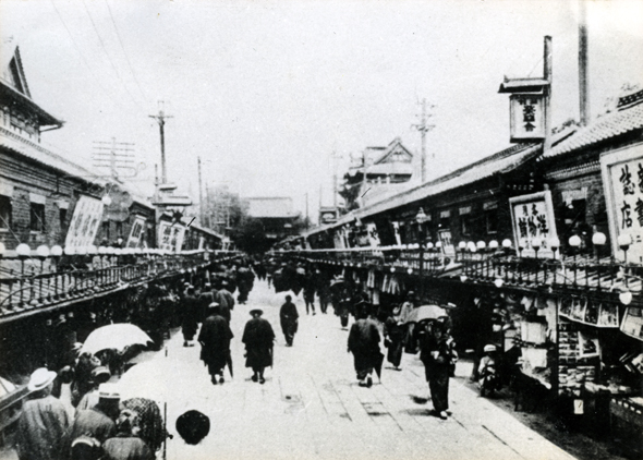 大正9年(1920)頃の仲見世、出店には電飾が並んでいます。