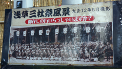 大正12年(1923)の浅草三社祭の写真が、浅草の街角に掛けられていました。