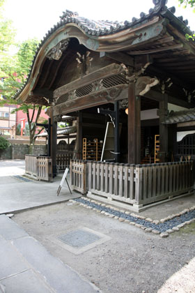 伝法院は浅草寺の本坊として、現在は安永6年(1777)に建立された客殿や大玄関、明治35年(1902)に再建された大書院、そして大正期以降に再建された浅草寺貫首(かんす)大僧正の居間等から成っています。建立時には観音院、智楽院等と呼ばれていましたが、元禄年間(1688-1704)に伝法院と名付けられました。客殿には阿弥陀三尊が祀られ、その左右に徳川歴代将軍の位牌と浅草寺歴代の住職の位牌が安置されています。また、回向道場として伝教大師忌の「山家会(さんげえ)」、天台大師忌の「天台会」等の論義法要が行われています。約3,700坪の庭園は、寛永年間(1624-42)に小堀遠州によって作庭されたと言い伝わる「回遊式庭園」となっており壮大な緑を成しています。伝法院は、法親王(ほっしんのう)さまのお庭として永らく秘園とされ、現在も一般には非公開となっていますが、特別公開として庭園拝観や茶会等が催される事があります。