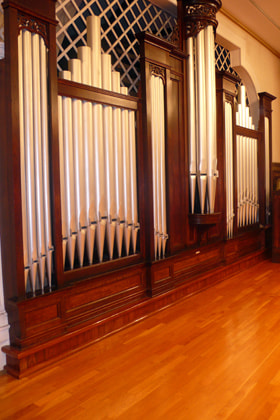 透过管风琴表面古朴的装饰和纹理能够感觉到它所在的时代。随着往旧奏乐堂的移建,曾经破损严重的管风琴也重现了往日的风采。