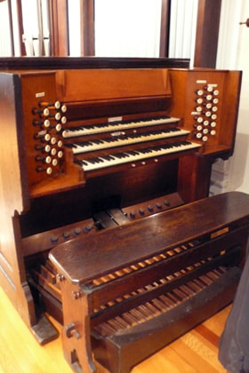 管风琴的键盘上,能够看到英国阿博特•史密斯公司的铭牌。