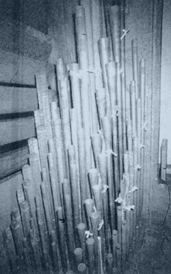 These metal pipes were made of an alloy of lead and tin. Two pipes on the right were newly made.