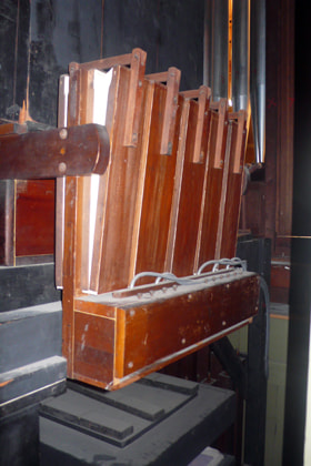 オルガンの背面には、大きな鞴(ふいご)やパイプが並んでいます。