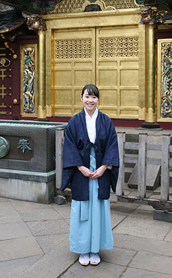 上野東照宮禰宜(ねぎ)の嵯峨まき(さが まき)さんにお話しを伺いました。(2019年2月に取材しました。)
