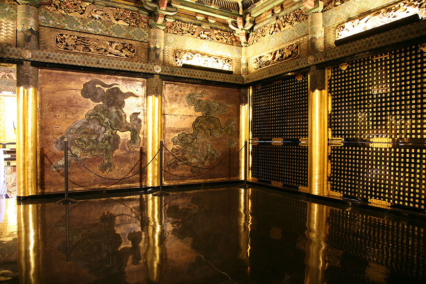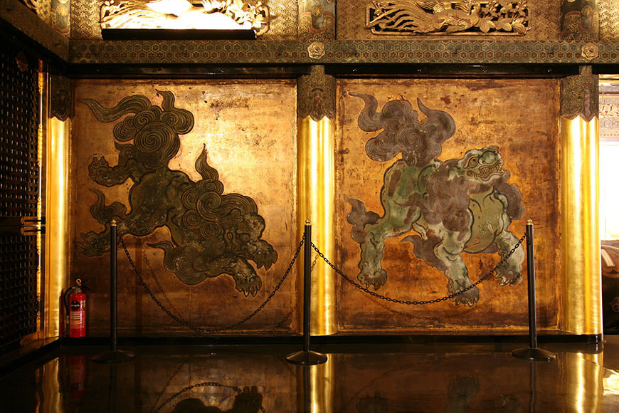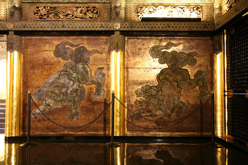 狩野派の絵師により四頭の阿吽(あうん)の唐獅子の姿が描かれています。