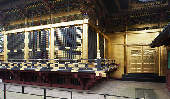 寛永8年(1631)に佐倉藩主土井利勝の寄進により建立された上野東照宮の五重塔は、その後の寛永16年(1639)に焼失し、後に再建されましたが、明治時代の神仏分離(神仏判然令)により取り壊しも検討されていましたが、寛永寺の帰属とすることで現在は上野動物園内にその姿を留めています。高さ33m、一層には薬師、阿弥陀、弥勒、釈迦の四尊が安置されています。昭和33年(1958)に東京都に寄贈されました。(下段に続く)