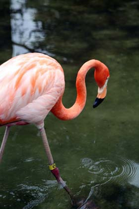 西园的火烈鸟,在再现的自然水池中缓缓的信步而行。