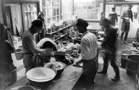 Feed for 400 species of animals is prepared in the feed preparation room. There is a variety of feed for animals in the zoo, including food products for human beings, vegetables, fruits, fish and shellfish, meat, eggs, cattle feed, pet food, natural products (moso bamboo, evergreen oak seeds and acorn), feed developed for animals, and living things produced for other purposes (rabbits, rats, mice and goldfishes).