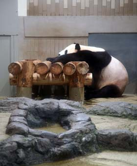 パンダ舎は、屋外運動場と室内展示場があり、その周囲は非常食のための竹林で囲まれています。出生地の中国四川省の飼育環境に近づけています。