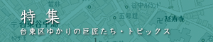 台東区は、その歴史を顧みても、文化にまつわるものを多く継承し、また数多の人材を輩出した地です。区内には上野、浅草等の盛場を擁し、江戸期から香具師や見世物、大道芸等の、今日のライブパフォーマンスもまちのあちらこちらで盛んに催され、また明治期からは博物館や美術館等が次々と設立され、さらには写真や映画、パノラマ、幻灯といった舶来の視覚文化による一大興行部市としてもその形成を促して来ました。また一方、古くから江戸から続く伝統工芸や、昭和には、靴・鞄、アクセサリー等の製造業者やデザイナーが集う、ものづくりのまちでもあります。台東区の多様な文化を、芸術・デザイン、映画・写真、建築、音楽等の様々な視点から紹介します。