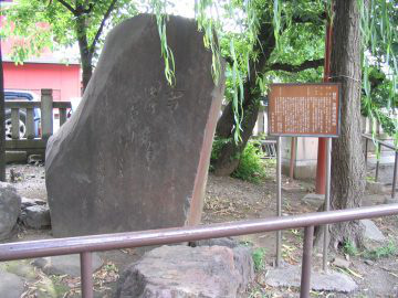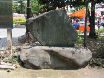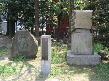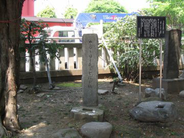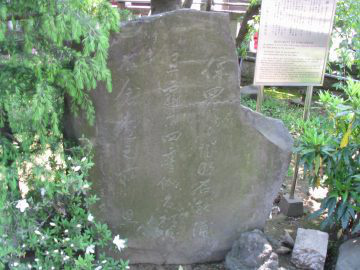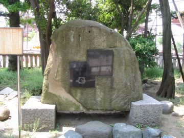 This monument was offered to Hitomaro-sha (a shrine to worship Kakinomoto no Hitomaro) in August of 1816 by Yoso-oi Tayu who adored Hitomaro. The shrine was destroyed after the Meiji Restoration, except for this monument which was move here in November of 1954.
