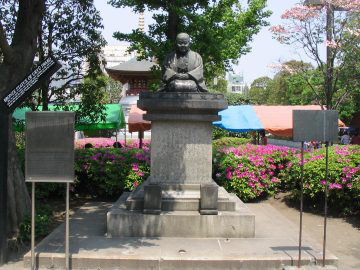 It is said that, just before his death, he ordered his followers to carve his figure on a stone and bury it near Nio-mon (Deva gate), one of the busy districts of the city. He wanted his statue to be stepped on by as many people as possible in order to expiate the crimes he had committed in life. Afterward, the stone statue was eventually stored in this temple.