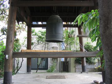 Choshoji Temple is a very old temple belonging to the Nichiren sect of Buddhism and is reported to be built either in 1279 or 1282. In former days the temple had an extensive precinct, a part of which faced to the Sumida River to the west of the temple. Once when the Sumida River flooded, all the temple edifices were washed away, and the copper bell sank to the bottom of the river. The people in the neighborhood called the depths where the bell sank "Kanega-Fuchi (Depths of the bell)." The present bell was cast in 1720, on which the history of Choshoji Temple and the legend of "Kanega-Fuchi" are inscribed.