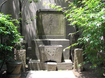 向かって左側が清右衛門の墓。先の尖った角石墓塔で、梵字の下に楷書で、「接取院殿贈従五位光誉照山大居士」の戒名が刻んである。両墓石は大正12年(1923)の関東大震災で破損したが、昭和12年(1937)、有志によって修復された。