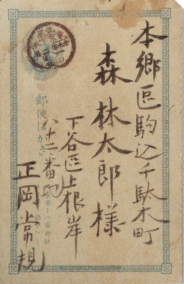 正崗子規寫給鷗外的明信片(文京區立森鷗外紀念館藏)