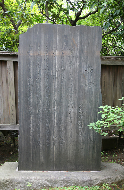 The Monument of Maihime. The inscription was selected by Rui Mori, a son of Ogai, and the monument was built through an effort of Izumi Hasegawa who was the leading authority on Ogai Mori.