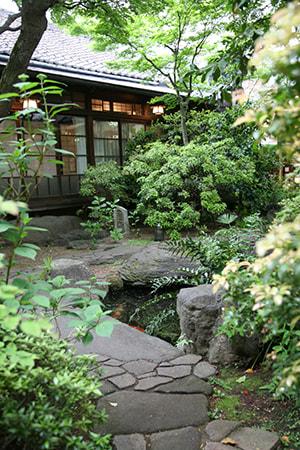 When I became the proprietress, I knew little about Ogai Mori, so Izumi Hasegawa, who was the leading authority on Ogai Mori, worried about it, and taught me various things about Ogai. On one occasion, I told him that there was a red brick wall. He said he really wanted to see it, and saw it from end to end. He said that this was certainly a red brick wall from the period of the Akamatsu family, and it was very good that the red bricks were preserved. (continued in the right column)
